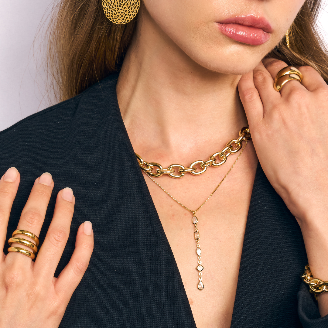 Medida: 40 cm + 5 cm extensor Medida cadena debajo circón : 5,8 cm Enchape Oro 18kt y circón, resistente al agua, garantizado 12 meses. Hipoalergénico: No contiene níquel, libre de alergias.