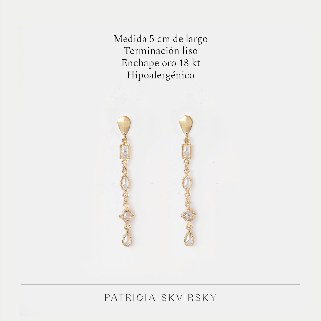 Medida: 5 cm largo Enchape: Oro 18 kt, resistente al agua, garantizado 12 meses. Hipoalergénico: No contiene níquel, libre de alergias. Terminación: liso