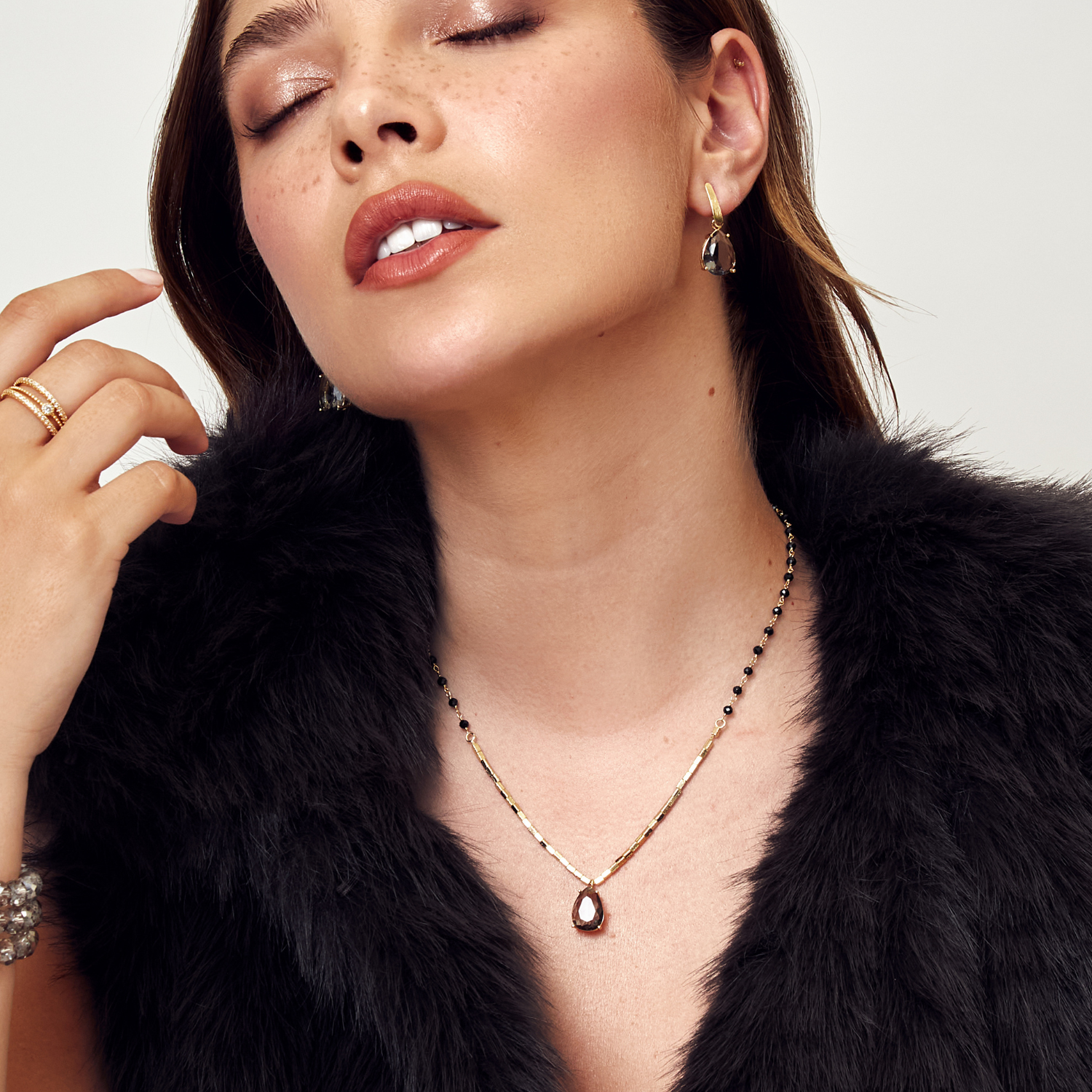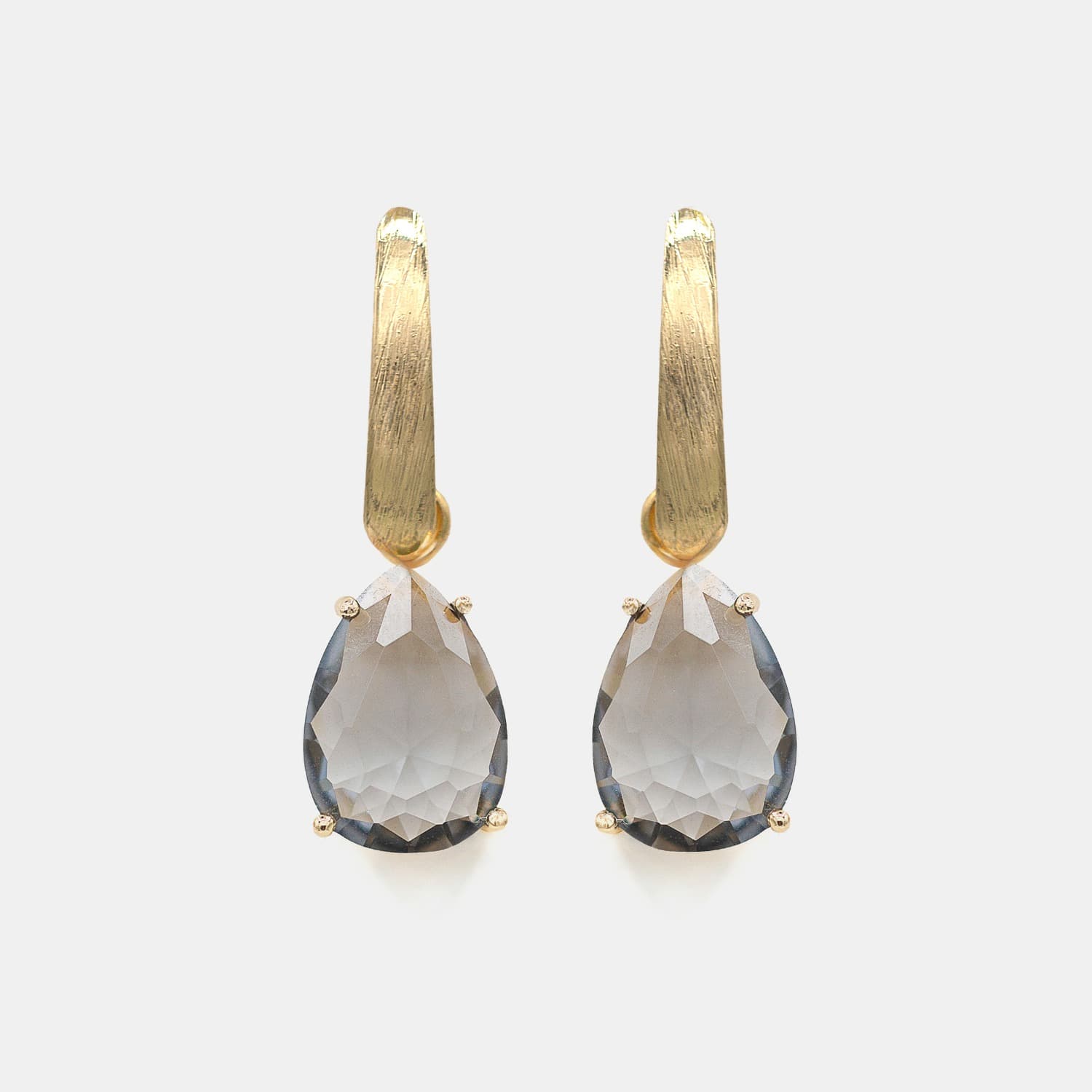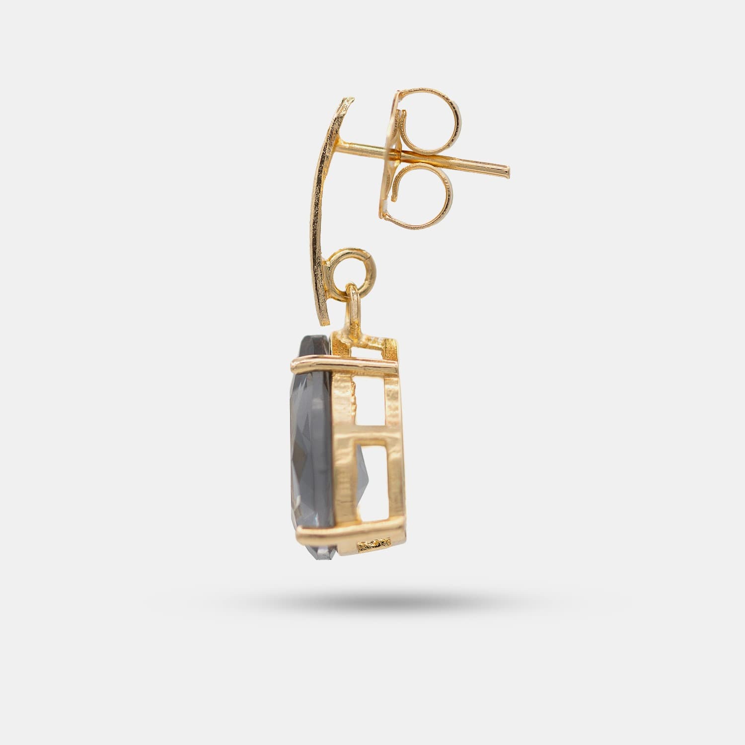Sobre la joya: • Medida: — • Material: Enchape de Oro 18K • Detalle: Cristal fumé engastado • Cierre: A presión, firme y cómodo • Resistente al agua • Garantía: 12 meses • Hipoalergénicos, libres de níquel