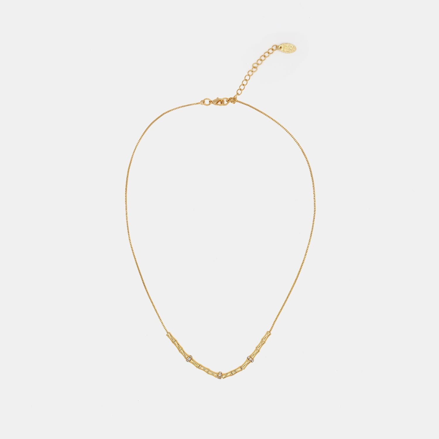 • Diseño central con piezas delicadamente engastadas con circones • Terminación pulida de alto brillo • Medida cadena: 40 cm + 5 cm extensor • Material: enchape de oro 18K • Garantía: 12 meses • Hipoalergénico, libre de níquel